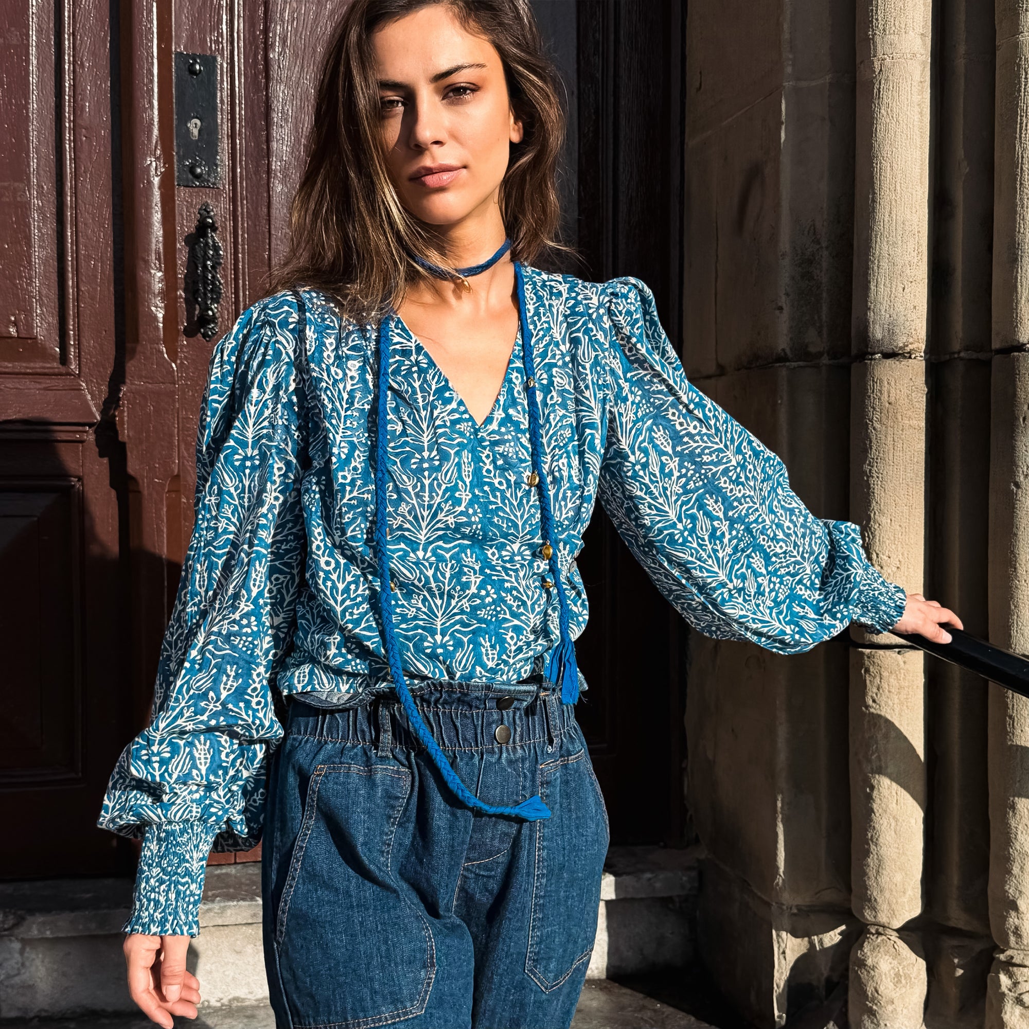 Aujourd’hui, toutes les créations Lûza sont fabriquées à Jaipur, dans des ateliers à taille humaine où perdure la maîtrise du blockprint, une technique d’impression traditionnelle réalisée à la main à l’aide de tampons sculptés dans le bois. Les vêtements sont confectionnés en voile de coton 100 %, une matière douce et légère qui épouse la peau avec naturel. Chaque motif est imprimé manuellement, rendant chaque pièce unique, légèrement imparfaite, et donc précieuse — le témoignage d’un geste artisanal authentique. À travers Lûza, Louise rend hommage aux artisans qui perpétuent ces traditions, et à la beauté du temps qui passe dans les choses faites à la main. La marque célèbre la rencontre entre le savoir-faire ancestral et une élégance contemporaine, entre l’audace et la délicatesse, entre la femme et le monde.