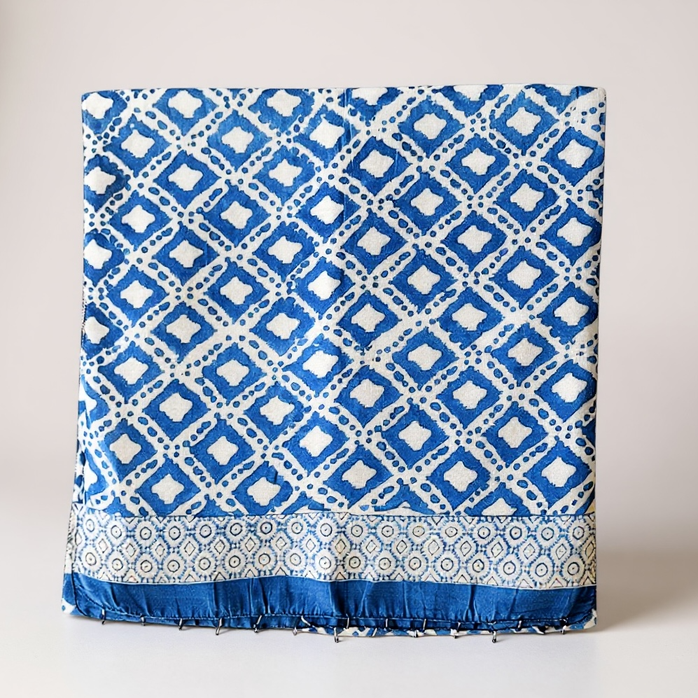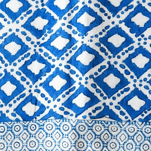 Chaque version du foulard Sira présente un motif unique, travaillé grâce au savoir-faire traditionnel du blockprint. Les couleurs vibrantes et la précision des dessins témoignent du travail manuel des artisans de Jaipur.