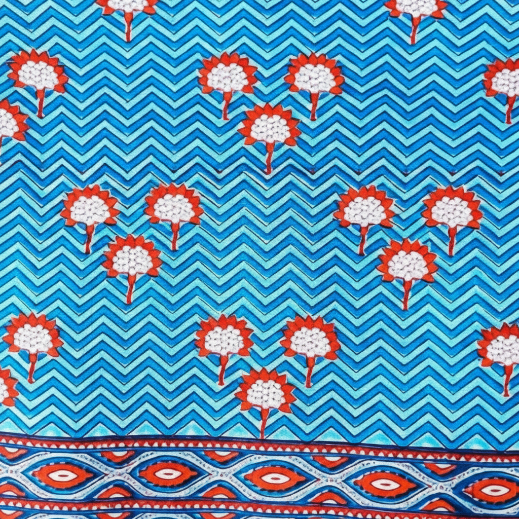 Chaque version du foulard Sira présente un motif unique, travaillé grâce au savoir-faire traditionnel du blockprint. Les couleurs vibrantes et la précision des dessins témoignent du travail manuel des artisans de Jaipur.