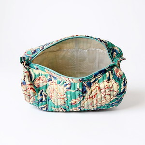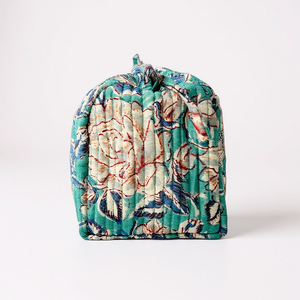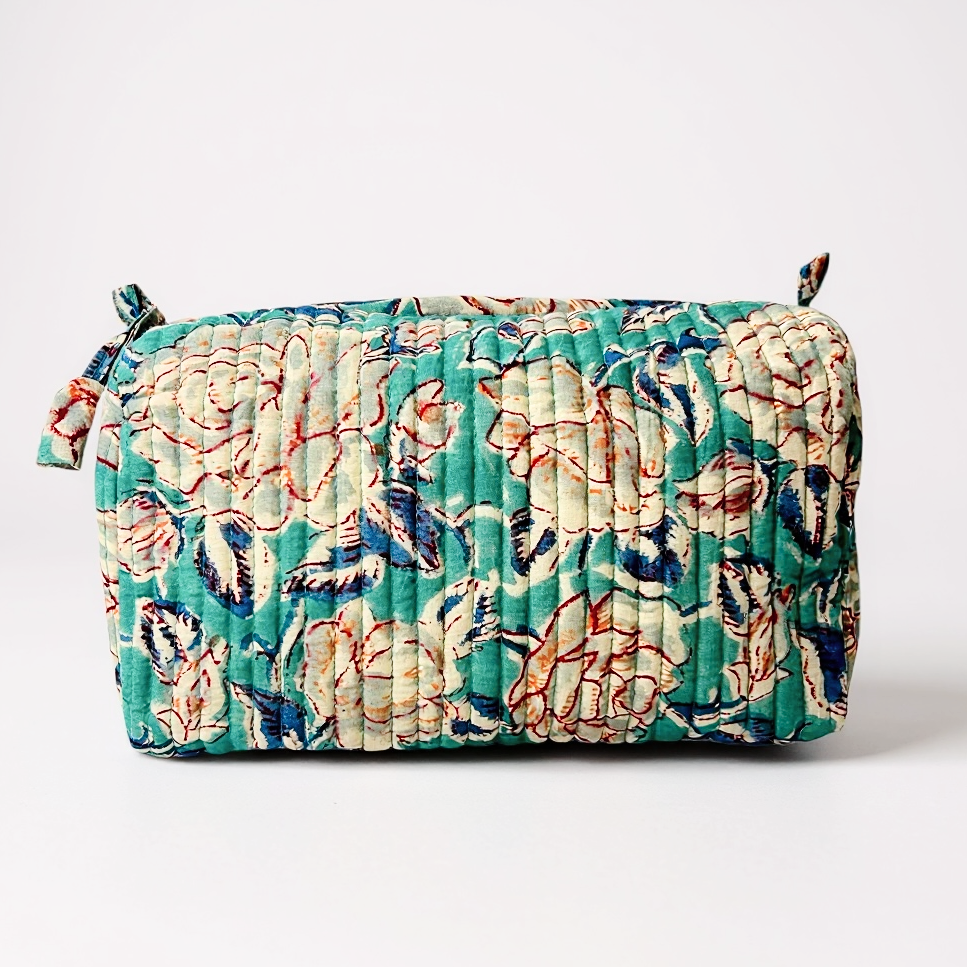 Confectionnée avec soin à Jaipur, elle séduit par son tissu en voile de coton imprimé à la main selon la technique du blockprint. Sa doublure étanche et ses quatre poches intérieures assurent une organisation optimale. Un modèle mixte, aussi joli que fonctionnel, pensé pour celles et ceux qui aiment voyager avec style.