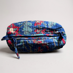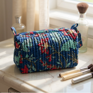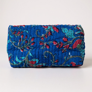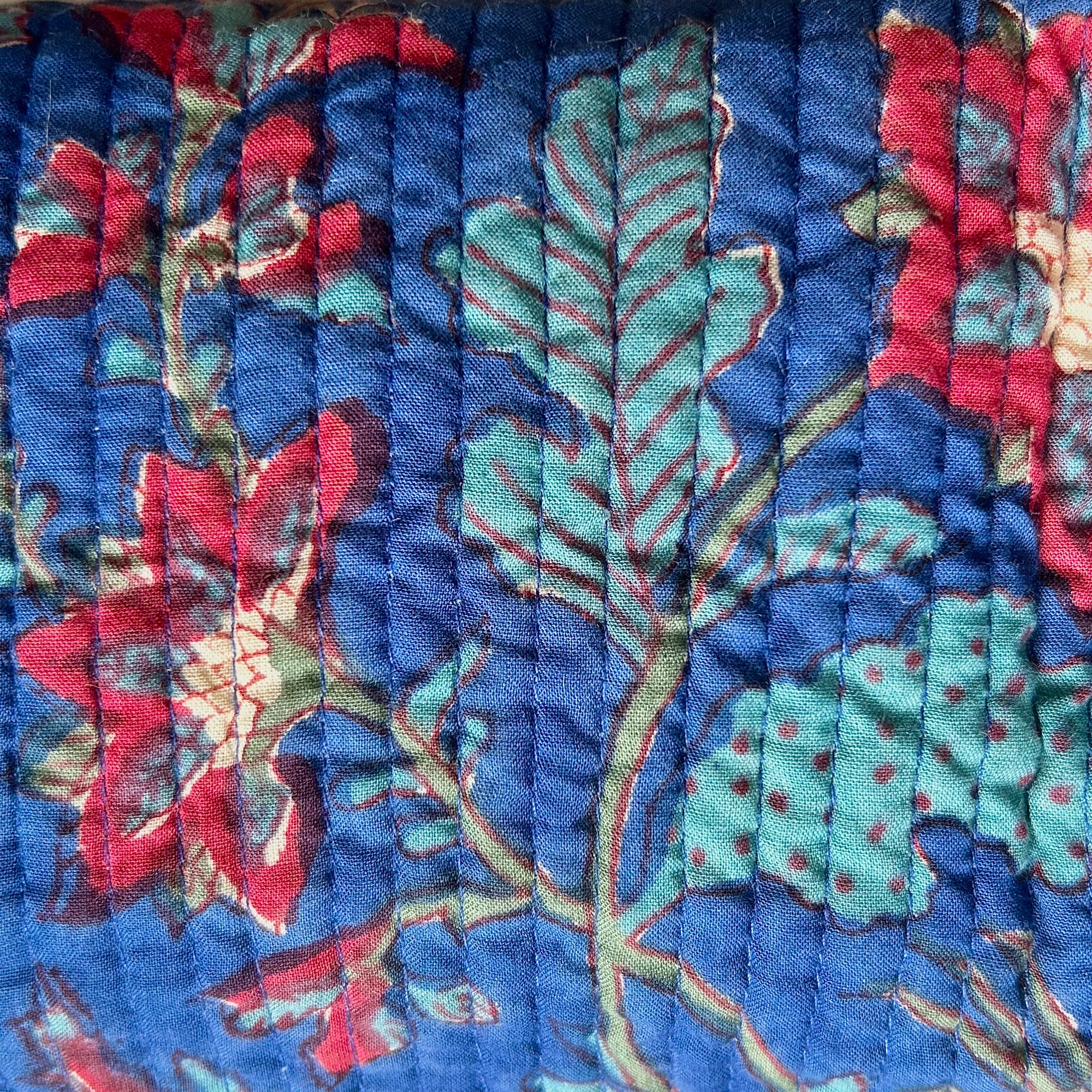 Compagne de voyage ou de tous les jours, la trousse Jaipur se distingue par son charme artisanal et son imprimé vibrant. Entièrement matelassée à la main dans un voile de coton léger, elle allie douceur et praticité.