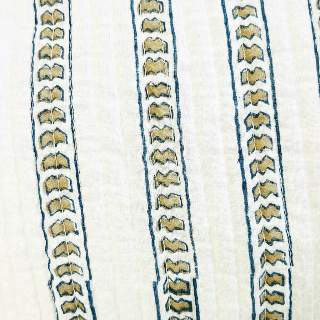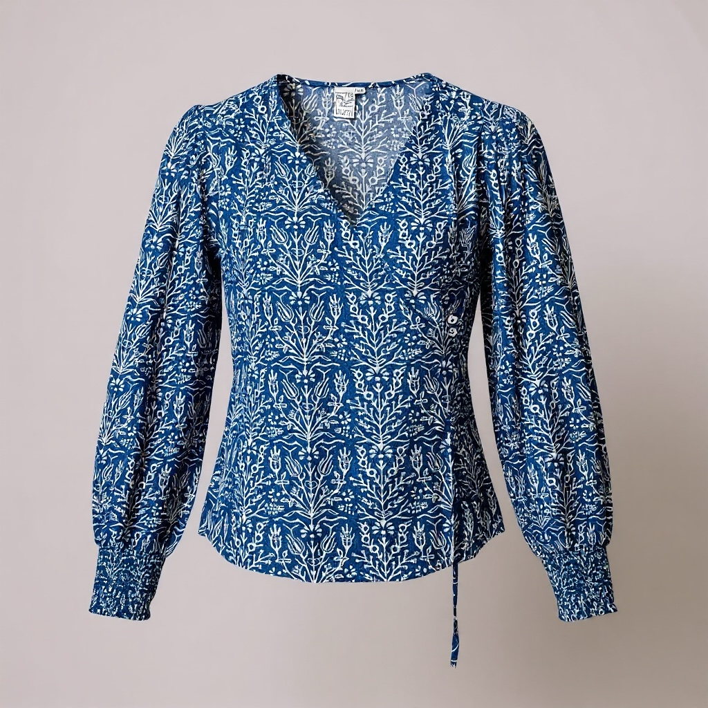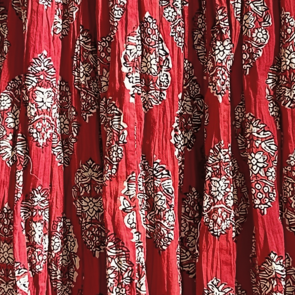 Les blouses en voile de coton, les jupes aux imprimés dansants et les accessoires dorés forment un vestiaire intemporel, où chaque détail célèbre la beauté du fait main.