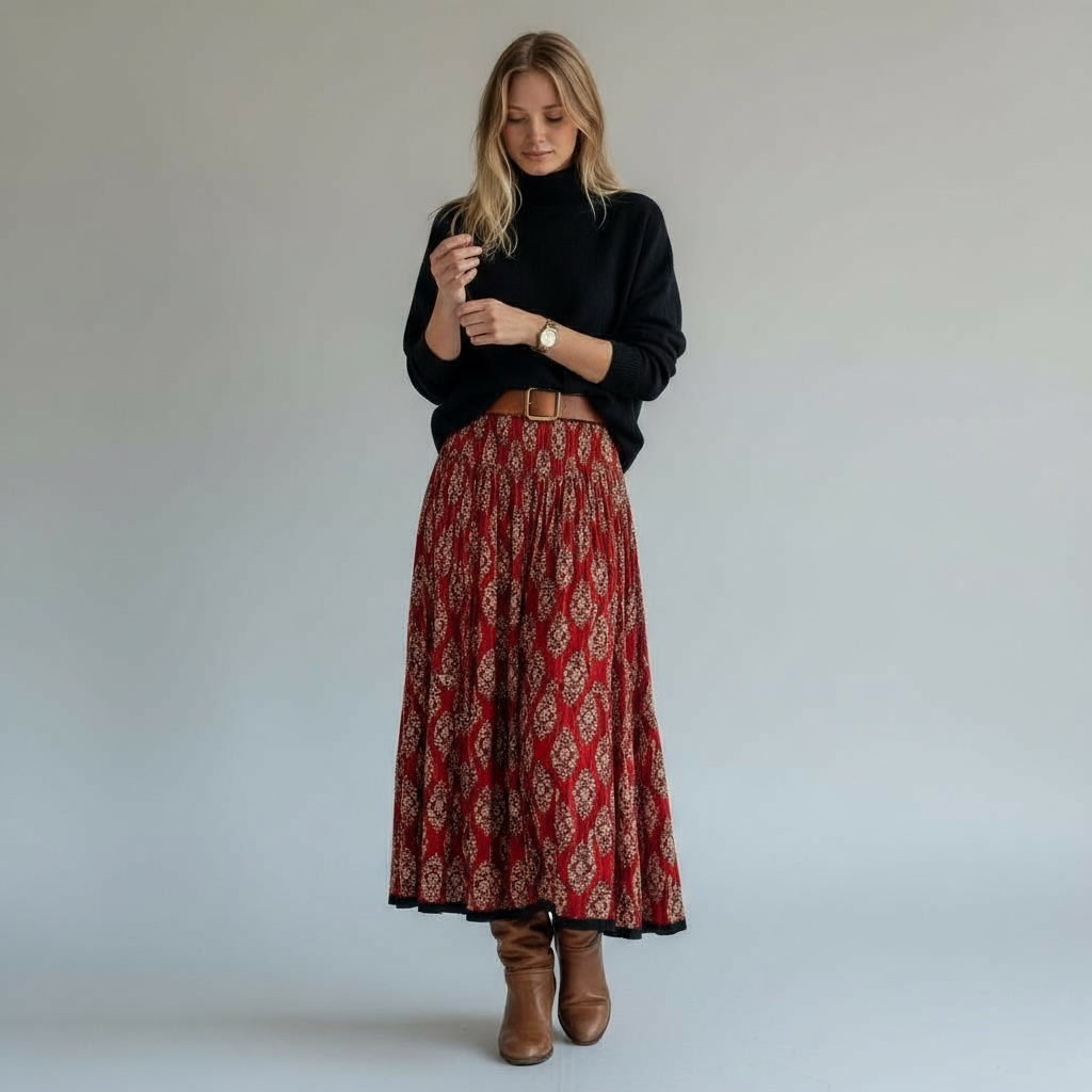 Motifs floraux, couleurs de terre et lumière solaire composent une palette harmonieuse — une invitation à vivre la mode comme un voyage, entre authenticité et féminité.