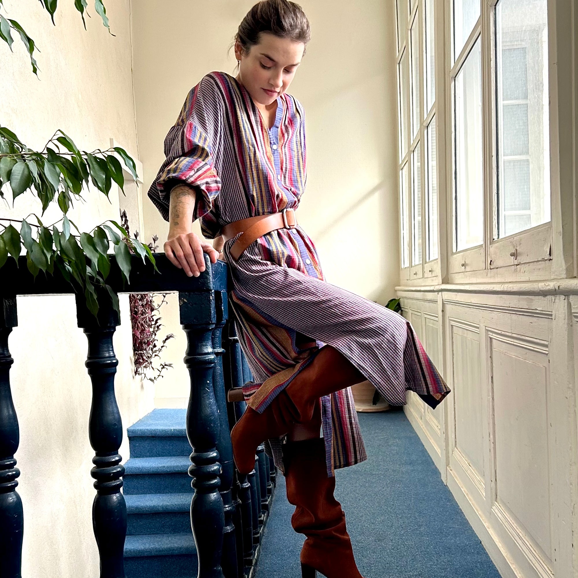 Confectionnée en coton, la robe Manurai s’adapte à toutes les saisons et se porte aussi bien en tenue décontractée avec des sandales qu’en version sophistiquée avec des bottes.