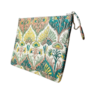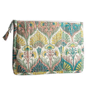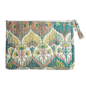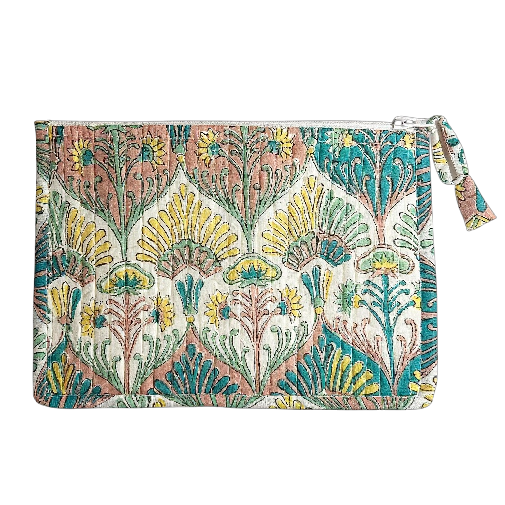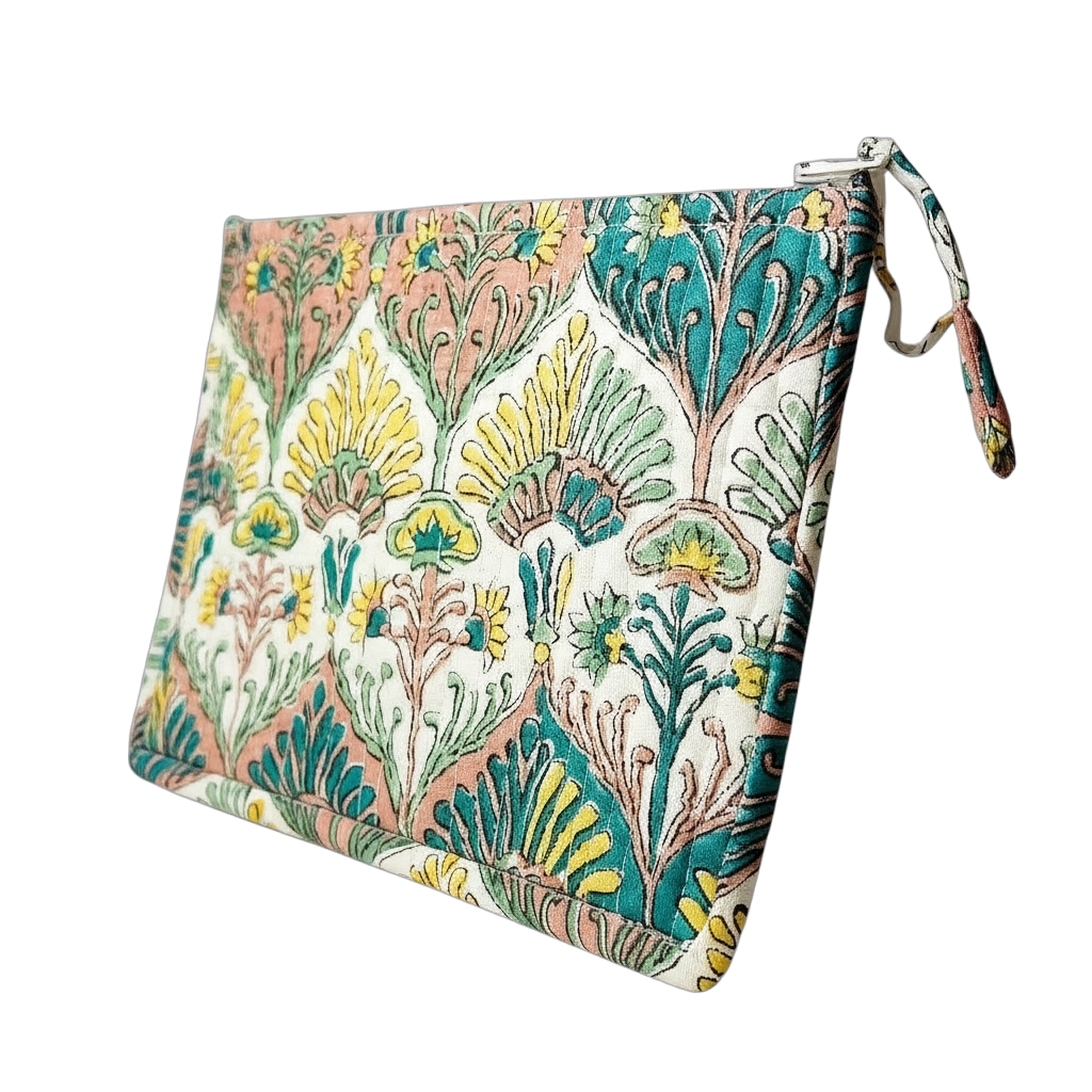 Élégante et discrète, cette pochette plate matelassée glisse dans n’importe quel sac et garde l’essentiel bien organisé. Son motif Padmini inspiré des jardins indiens : de grandes fleurs rouge brique et corail s’épanouissent sur un fond taupe doux. Raffiné et intemporel, Padmini célèbre l’élégance du block-print artisanal.