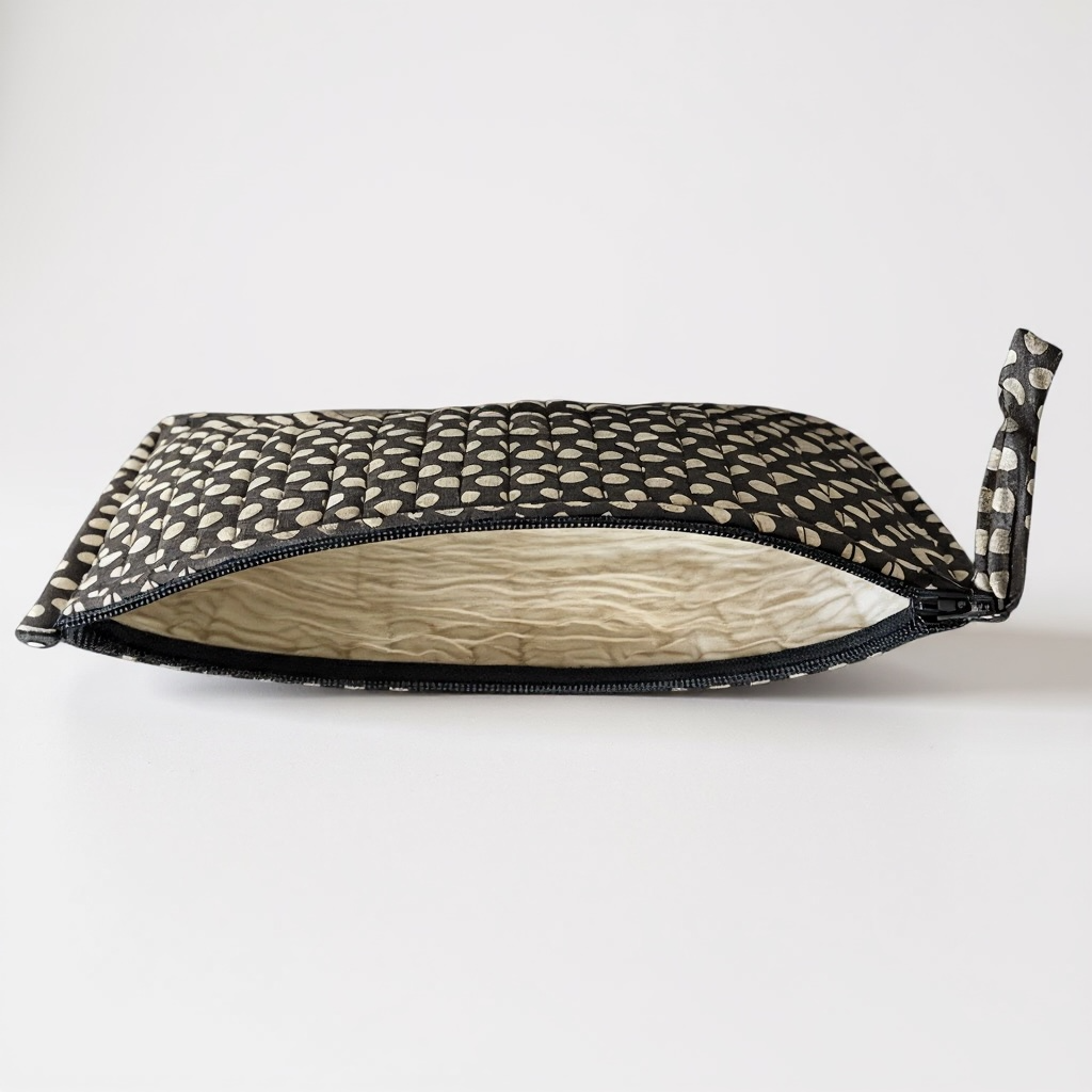 Élégante et discrète, cette pochette plate matelassée glisse dans n’importe quel sac et garde l’essentiel bien organisé.