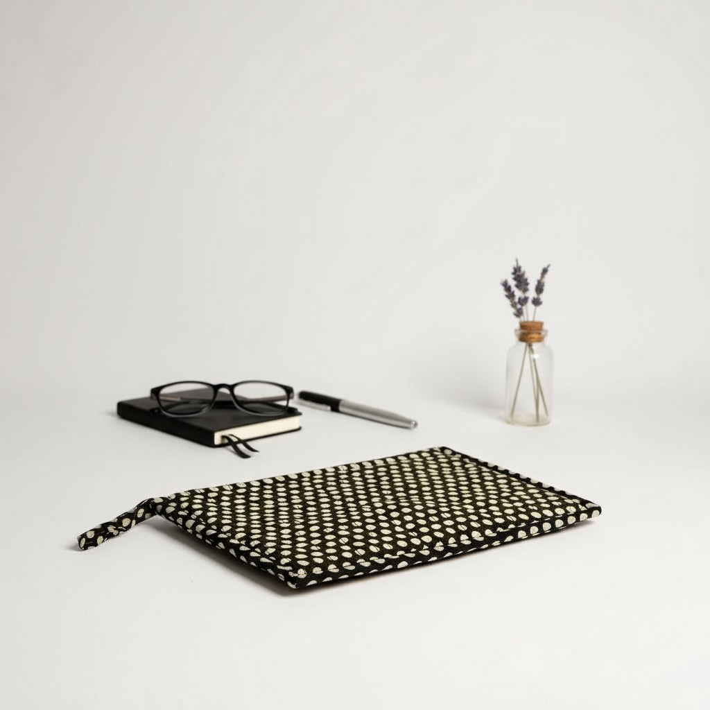 Son motif inspiré du clair de lune, le motif Noorani joue sur un contraste délicat entre pois ivoire et fond noir profond. Imprimé à la main en block-print, il allie simplicité graphique et charme artisanal. Un motif intemporel, à la fois minimaliste et lumineux.
