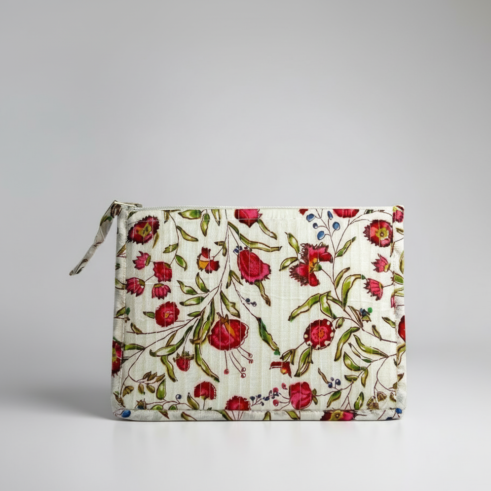 Élégante et discrète, cette pochette plate matelassée glisse dans n’importe quel sac et garde l’essentiel bien organisé.