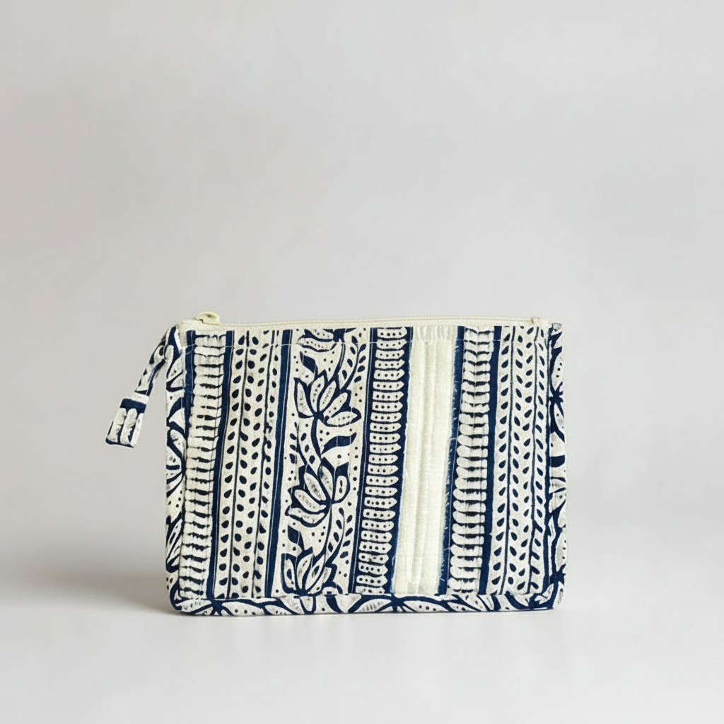Élégante et discrète, cette pochette plate matelassée glisse dans n’importe quel sac et garde l’essentiel bien organisé.