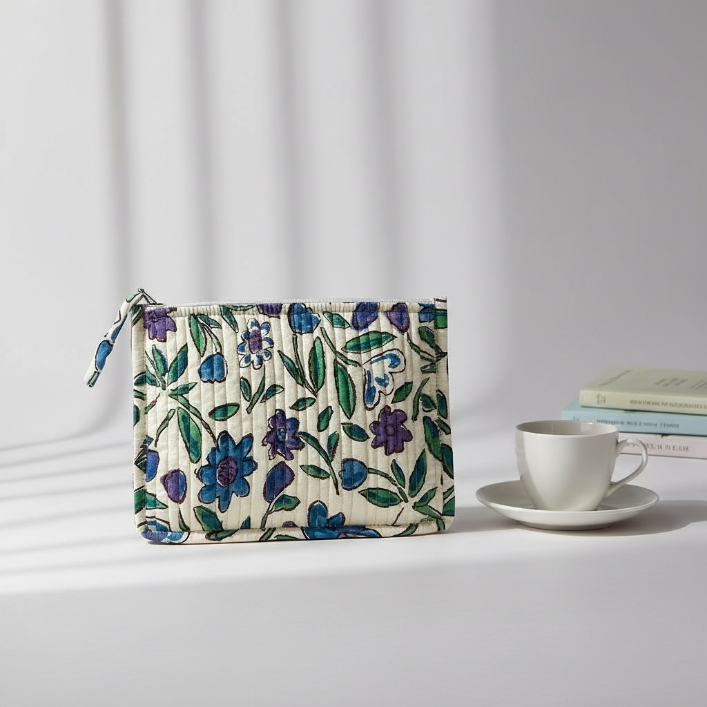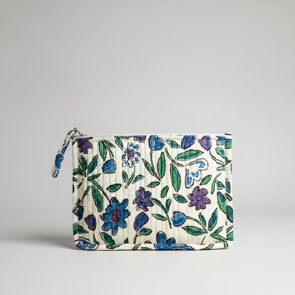 Élégante et discrète, cette pochette plate matelassée glisse dans n’importe quel sac et garde l’essentiel bien organisé.